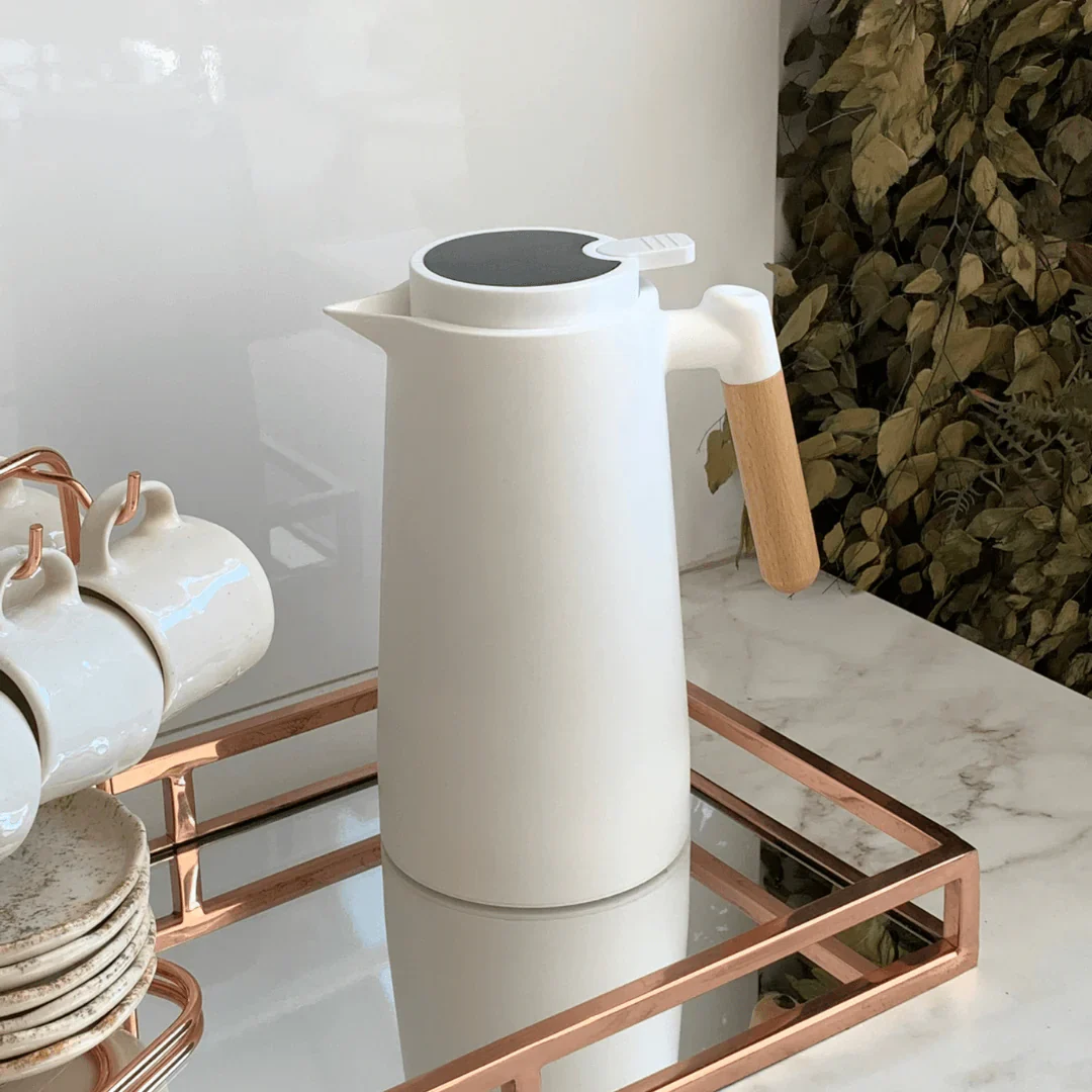 - Design Sofisticado: Alça ergonômica com detalhe amadeirado e acabamento fosco. Elegância para a sala de reunião ou para o café da manhã em família.